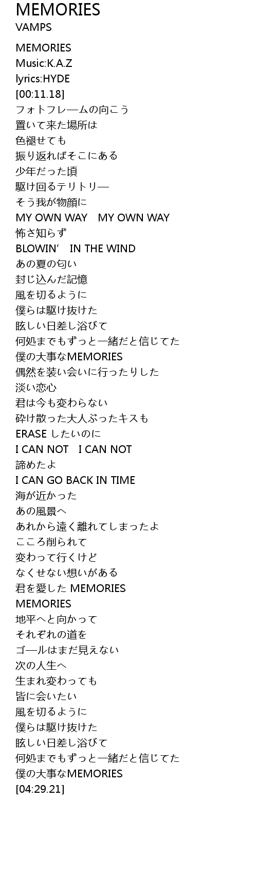 | [00:00.00] | MEMORIES |