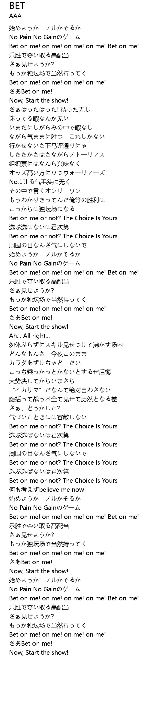 | Bet on me! on me! on me! on me! Bet on me! | |