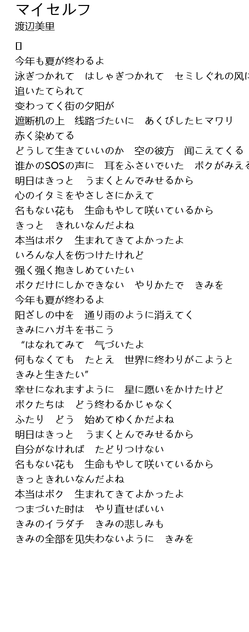 | 谁かのSOSの声に 耳をふさいでいた ボクがみえる | |