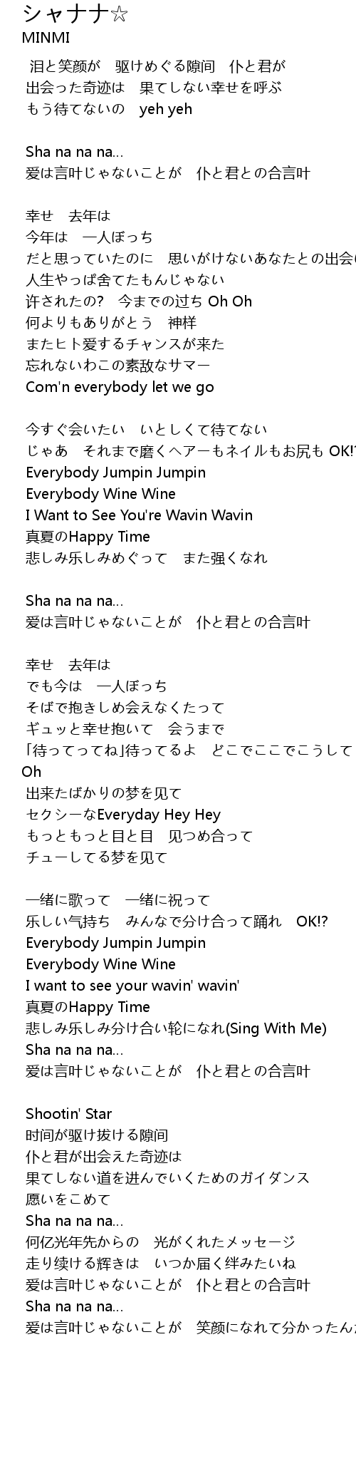 | 「待ってってね」待ってるよ どこでここでこうして Oh Oh | |