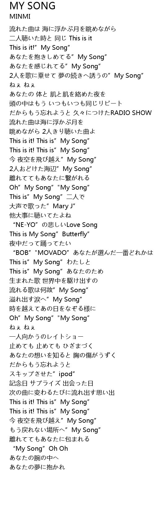| Song | MY SONG |