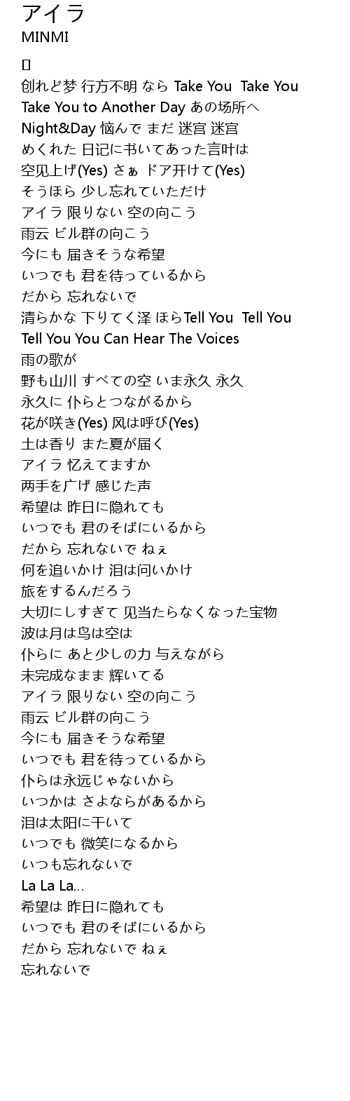 | 空见上げ(Yes) さぁ ドア开けて(Yes) | |