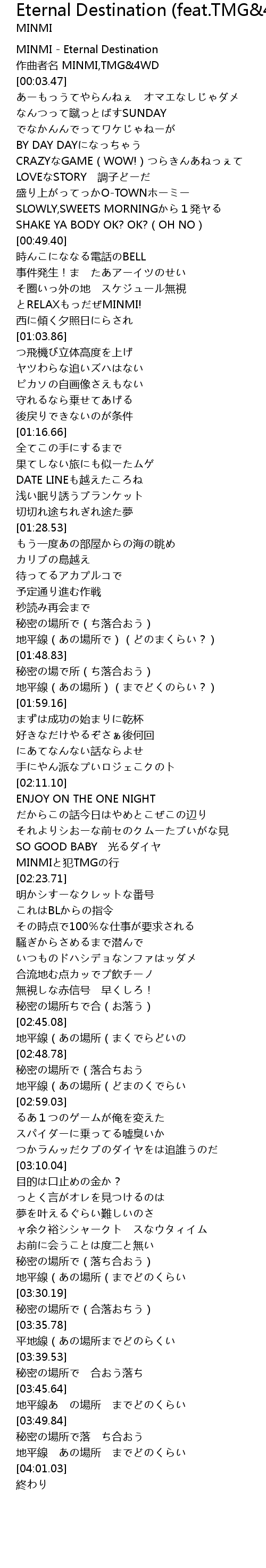 | [00:00.47] | MINMI Eternal Destination |