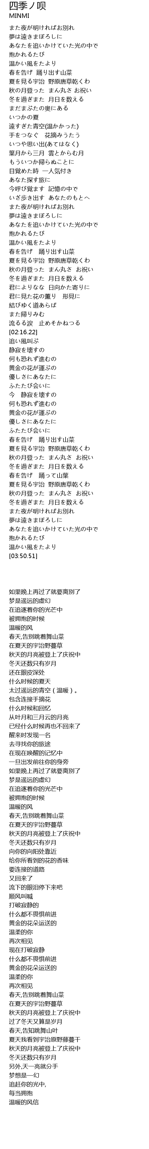 | [03:22.18] | 冬を過ぎまた 月日を数える |