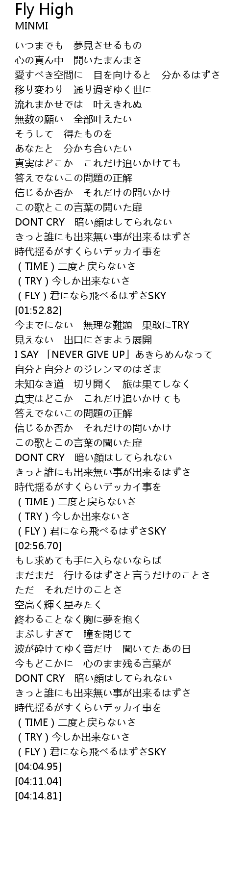 | [03:58.80] | (FLY)君になら飛べるはずさSKY |