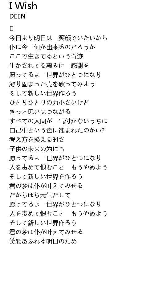 愿ってるよ 世界がひとつになり |