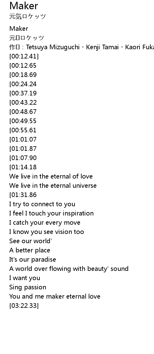 | [03:10.28] | You and me maker eternal love |