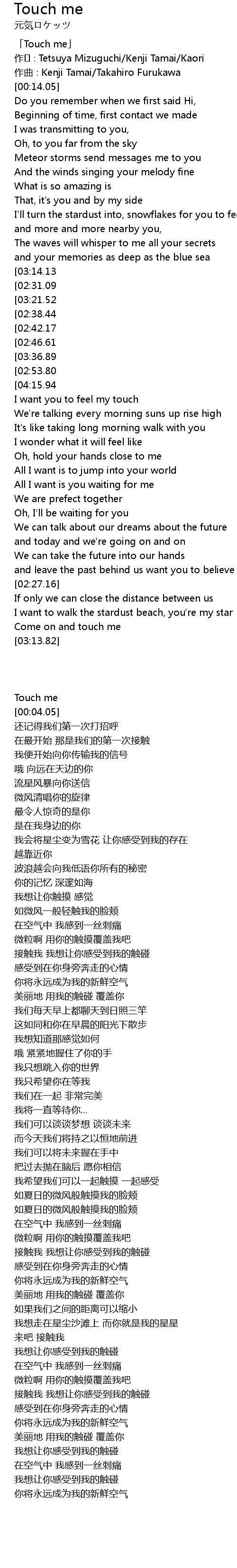 | [00:01.05] | 「Touch me」 |