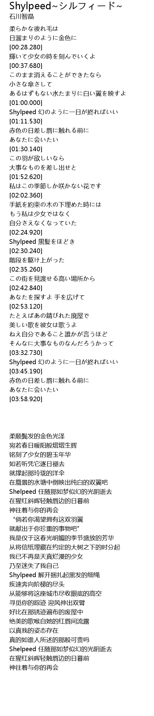 | [03:36.220] | Shylpeed 幻のように一日が終ればいい |