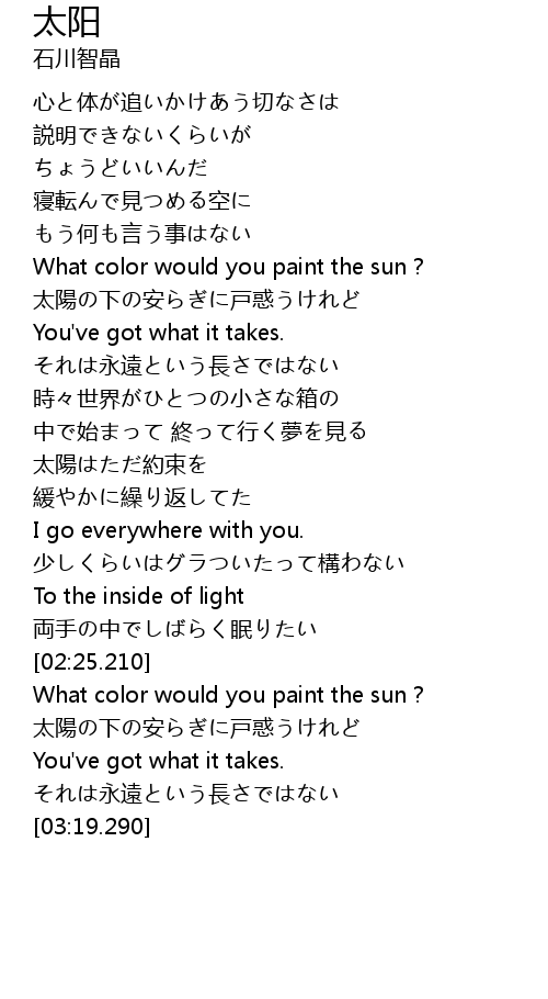 | [02:52.260] | 太陽の下の安らぎに戸惑うけれど |