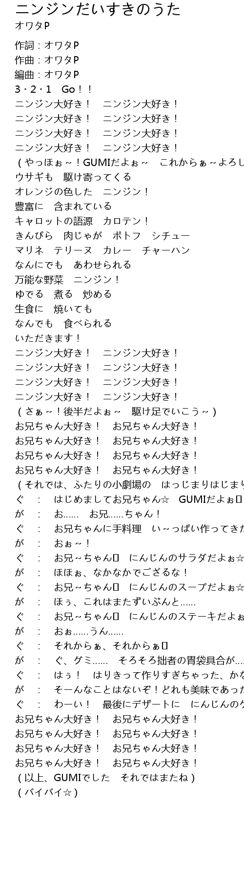 | [01:08.87] | ニンジン大好き! ニンジン大好き! |