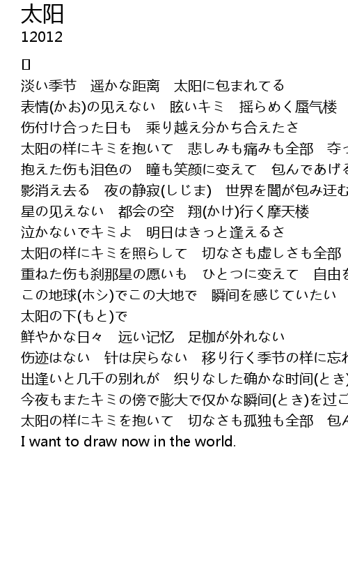 | 太阳の样にキミを抱いて 切なさも孤独も全部 包んであげる | |