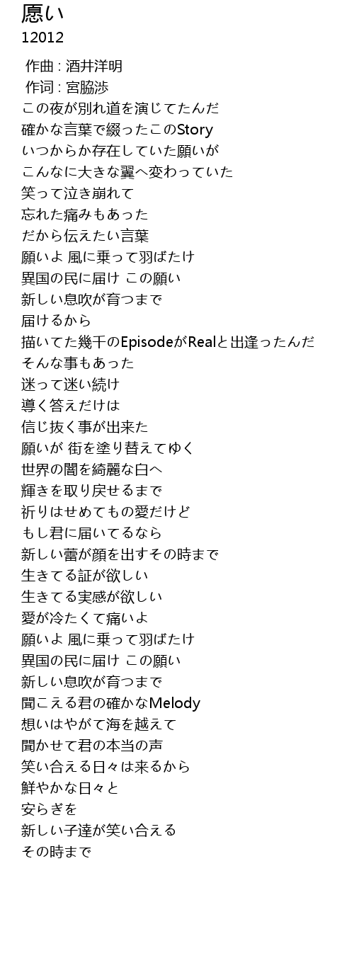 | [02:55.85] | 願いよ 風に乗って羽ばたけ |