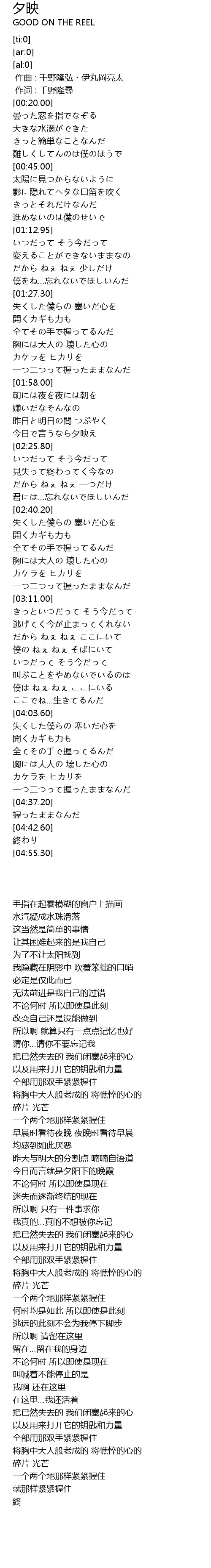| [02:22.00] | 今日で言うなら夕映え |