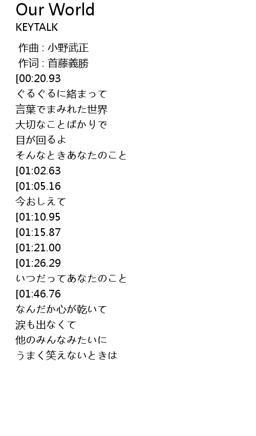 | [00:43.09][01:21.00] | ずっと小さな世界を |
