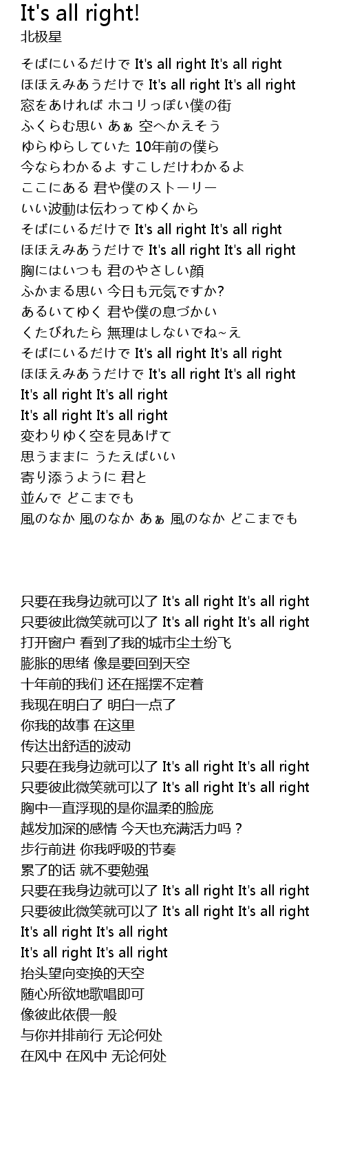 | [00:12.986] | It' s all right It' s all right |