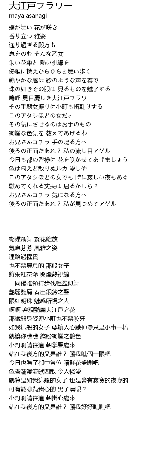 | [01:04.09] | 嗚呼 見目麗しき大江戸フラワー |