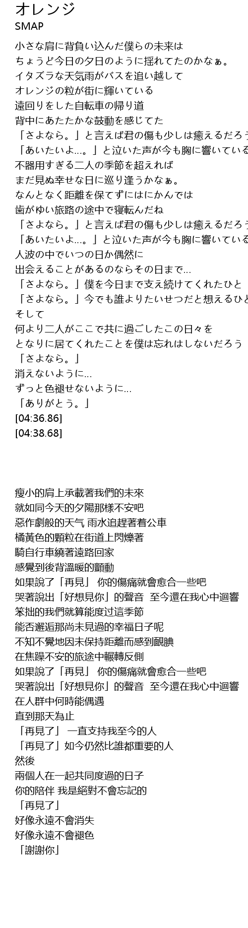 | [03:41.37] | 「さよなら。」今でも誰よりたいせつだと想えるひと |