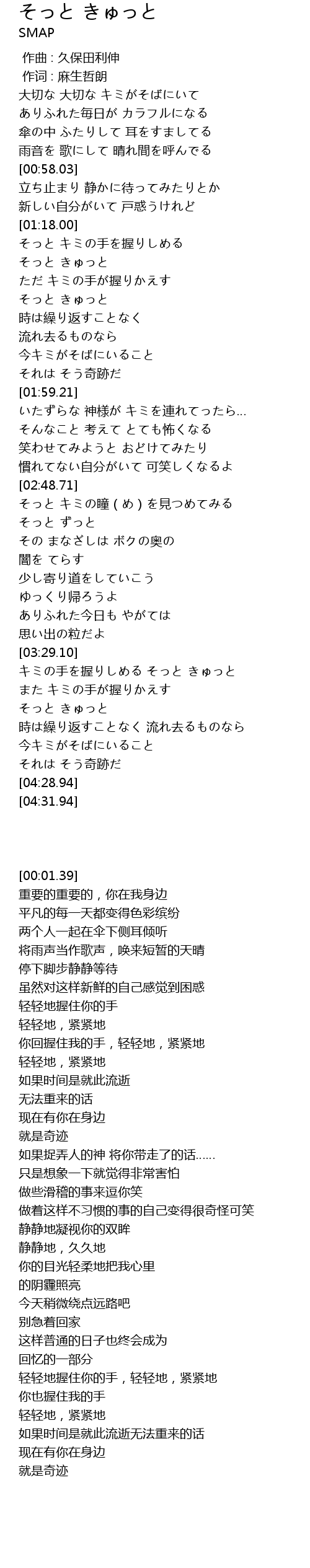 | [03:51.26] | キミの手を握りしめる そっと きゅっと |