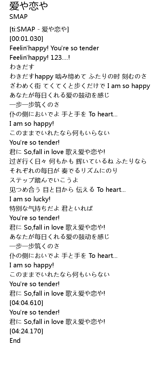 | [00:06.120] | Feelin' happy! You' re so tender |