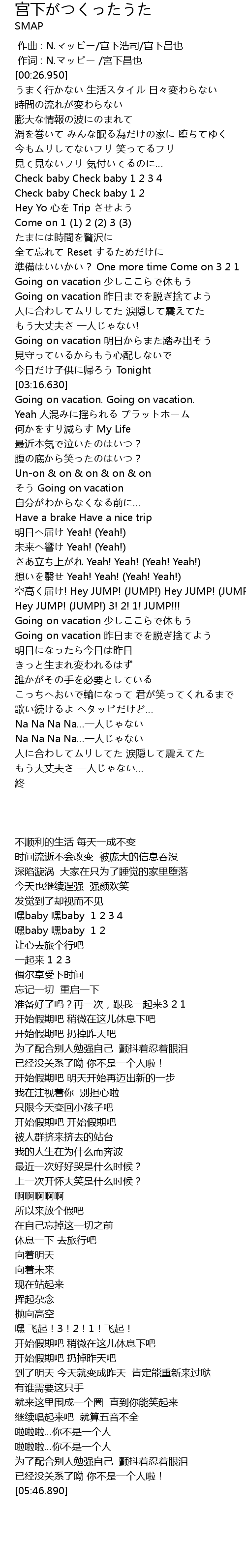 | [00:00.00] | 作曲 : N.マッピー/宫下浩司/宫下昌也 |