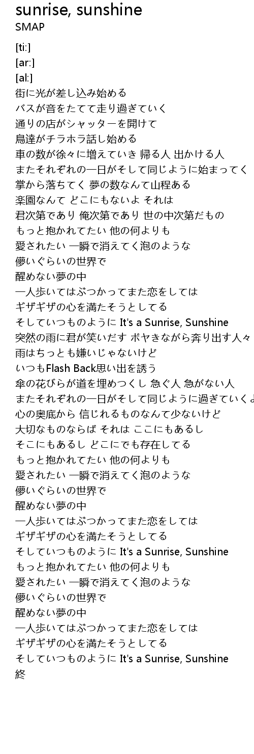 | [03:34.73] | そしていつものように It's a Sunrise, Sunshine |