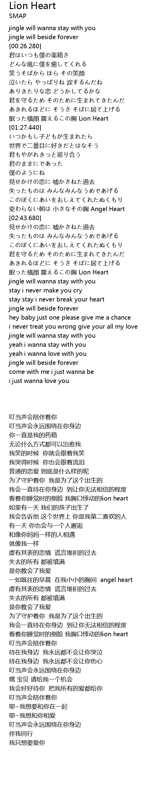 | [03:32.300] | 眠った横顔 震えるこの胸 Lion Heart |