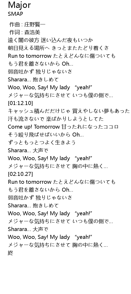 | [02:50.46] | メジャーな気持ちにさせて いつも僕の側で… |