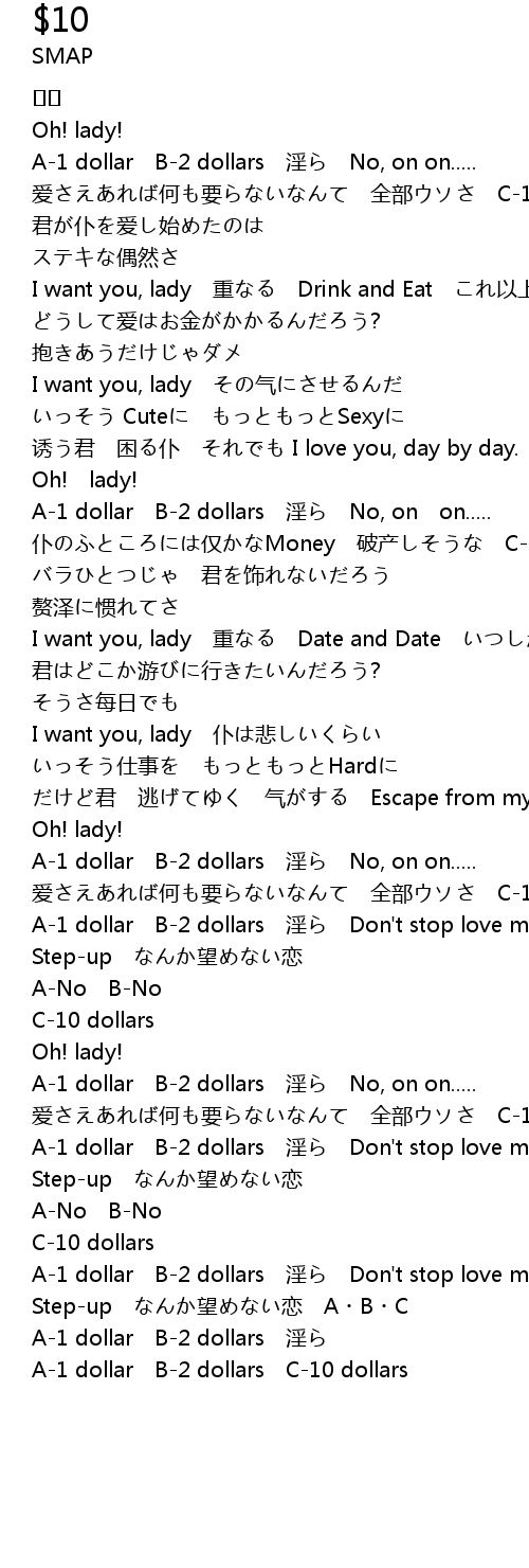 | A1 dollar B2 dollars yín Don' t stop love me do! | |