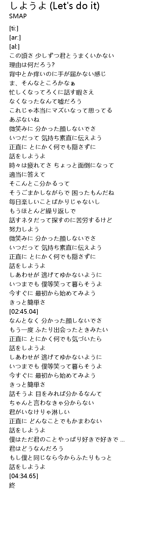 | [03:29.62] | 正直に とにかく何でも気づいたら |