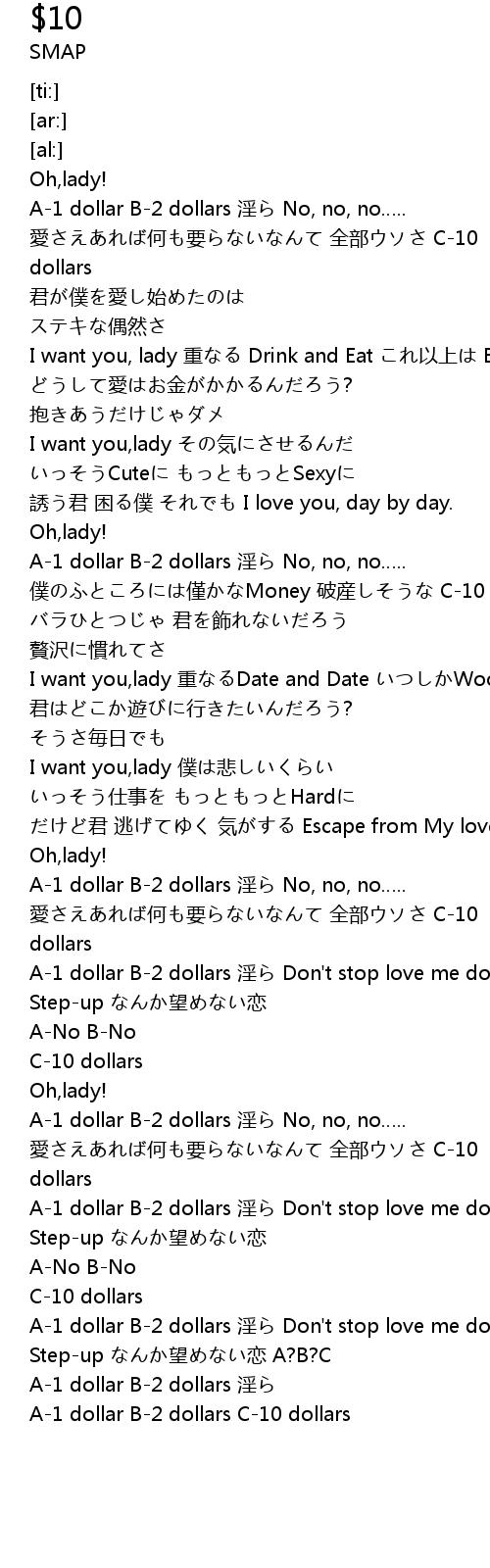| [00:09.87] | A-1 dollar B-2 dollars 淫ら No, no, no….. |