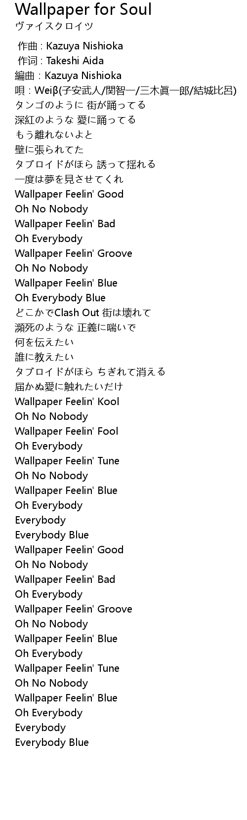 | [2:06.137] | Wallpaper Feelin' Blue |