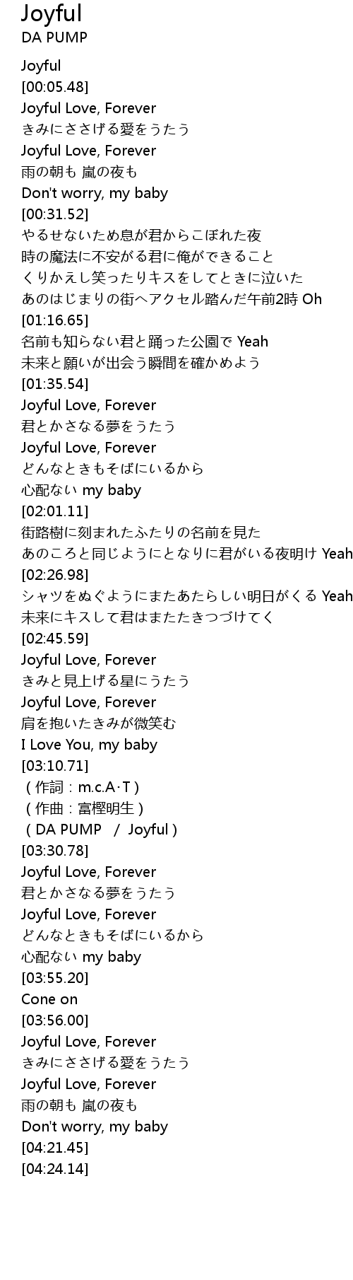 | [00:56.35] | くりかえし笑ったりキスをしてときに泣いた |