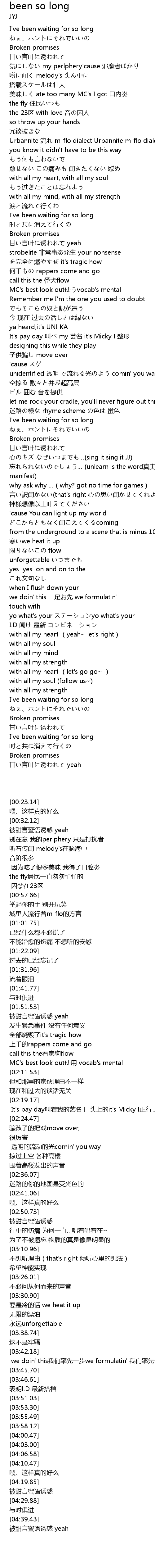 | [00:23.14] | I've been waiting for so long |