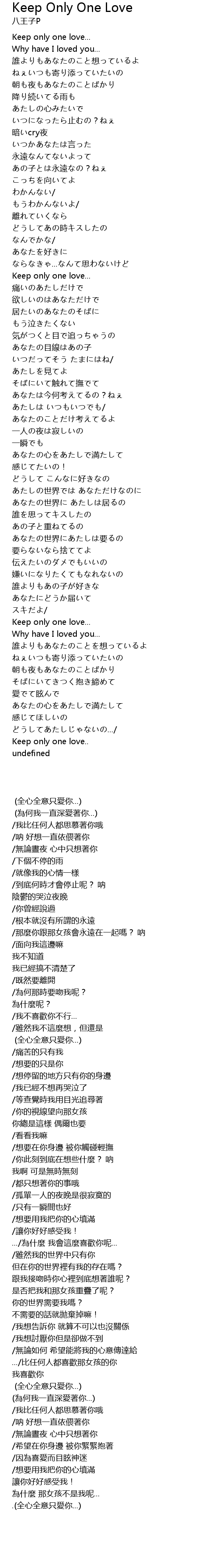 - Keep Only One Love