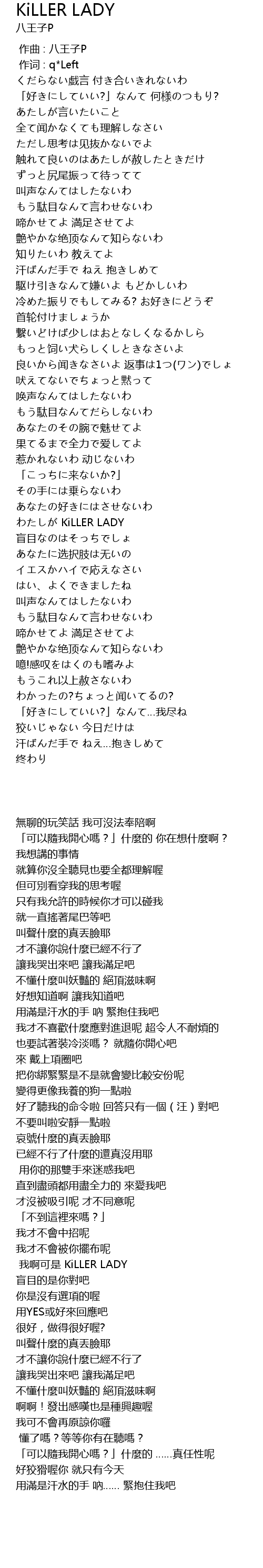 作词 : q*Left |