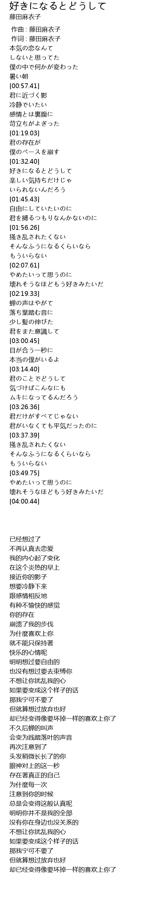 | [01:34.90] | 好きになるとどうして |