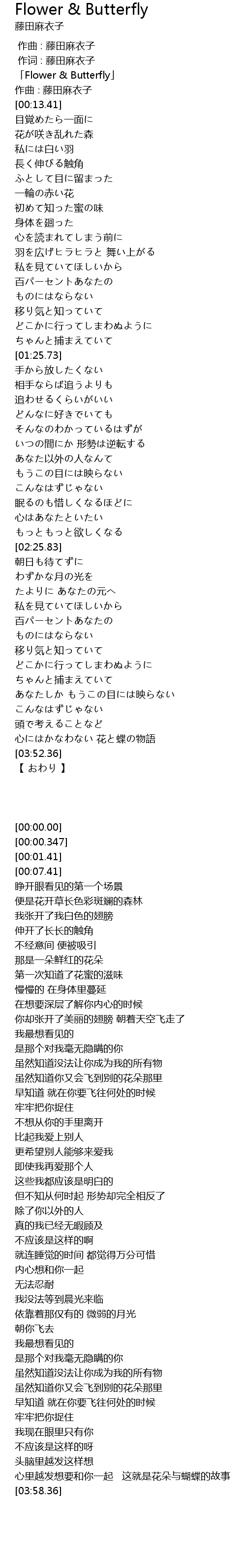 | [00:01.41] | 「Flower & Butterfly」 |