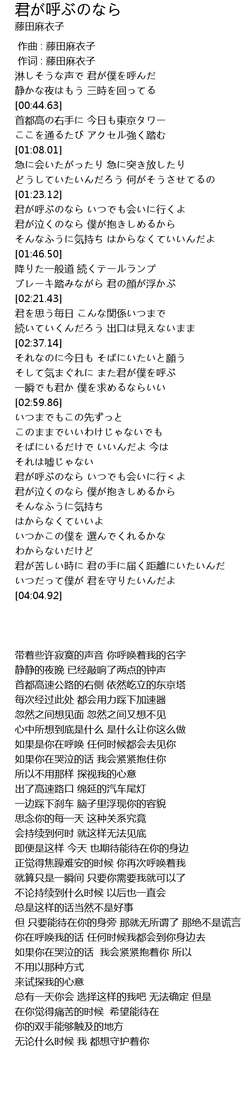| [00:01.00] | 作词 : 藤田麻衣子 |
