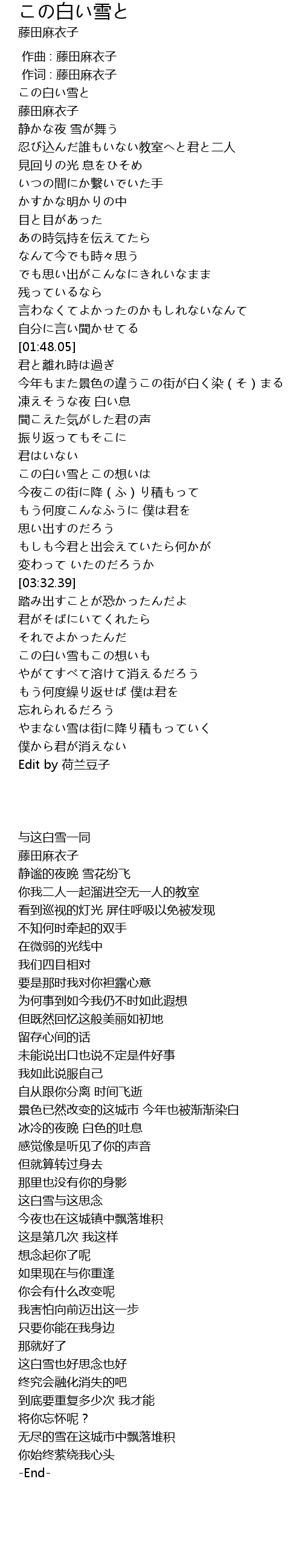 | [00:01.00] | 作词 : 藤田麻衣子 |