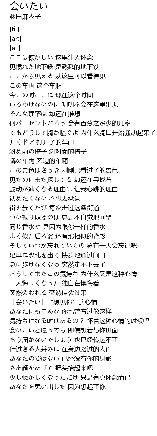 | [02:55.29] | 「会いたい」“想见你”的心情 |