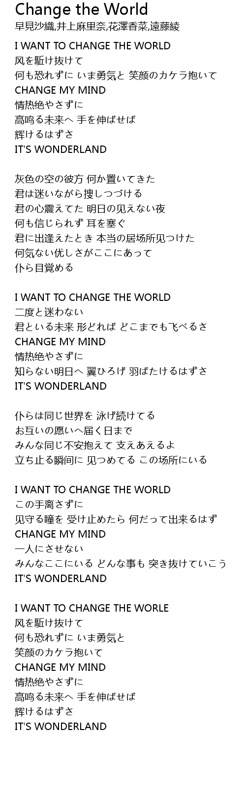| I WANT TO CHANGE THE WORLE | |