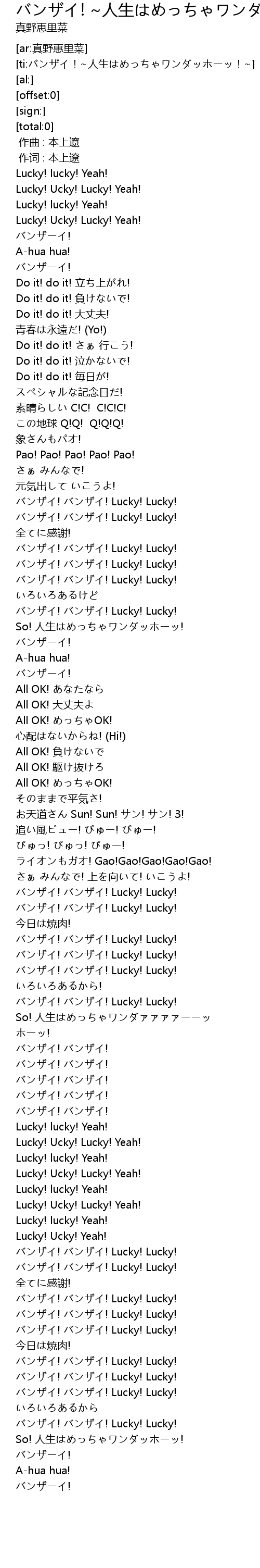 | [ti:バンザイ!~人生はめっちゃワンダッホーッ!~] | |