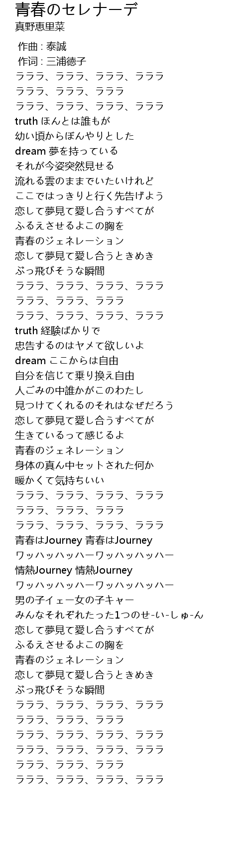 | [00:13.446] | ラララ、ラララ、ラララ、ラララ |