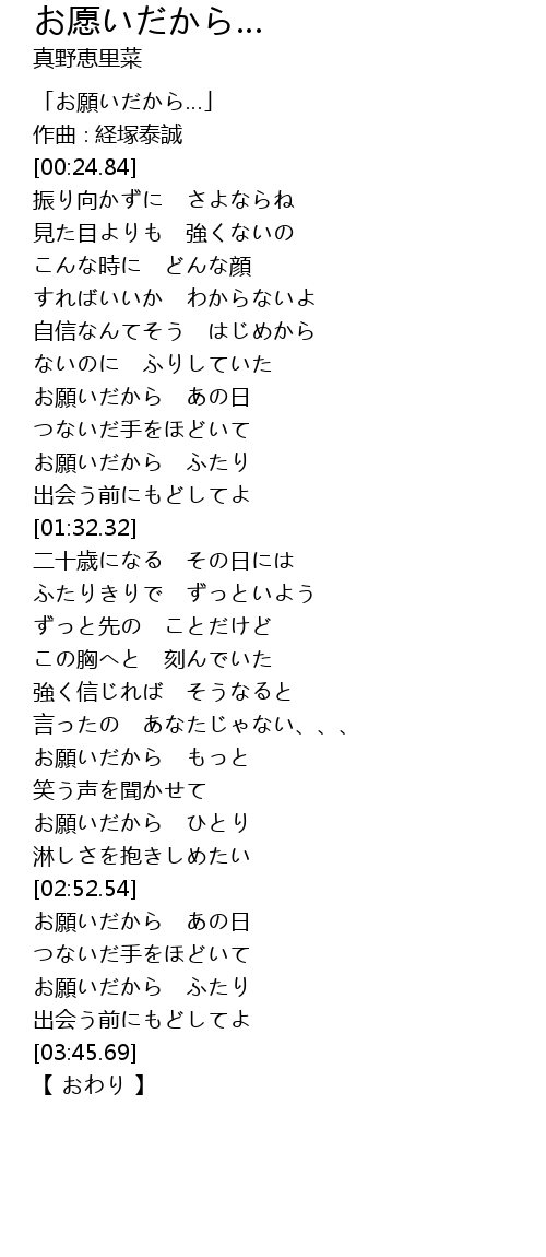 | [02:19.23] | 言ったの あなたじゃない、、、 |