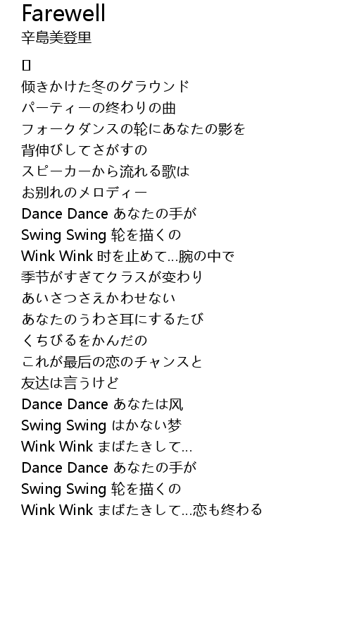| Wink Wink まばたきして…恋も终わる |