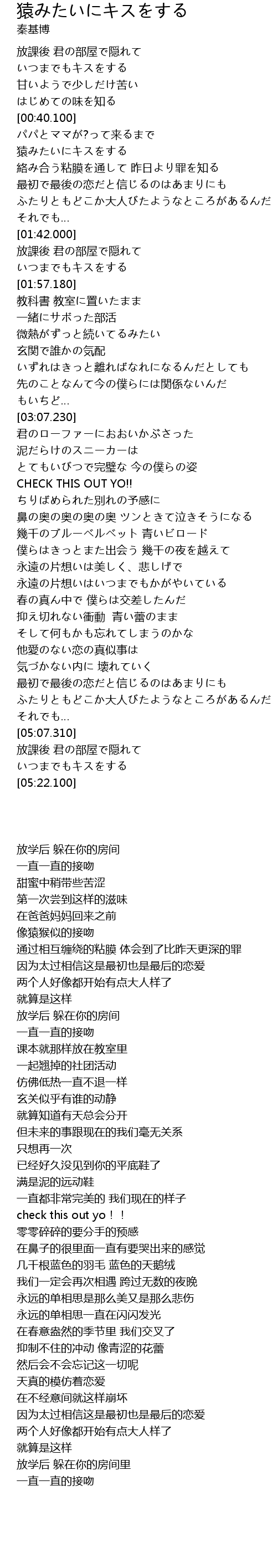| [00:54.390] | 猿みたいにキスをする |