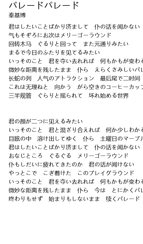 | 终わりもせず 始まりもしないまま 续くパレード |