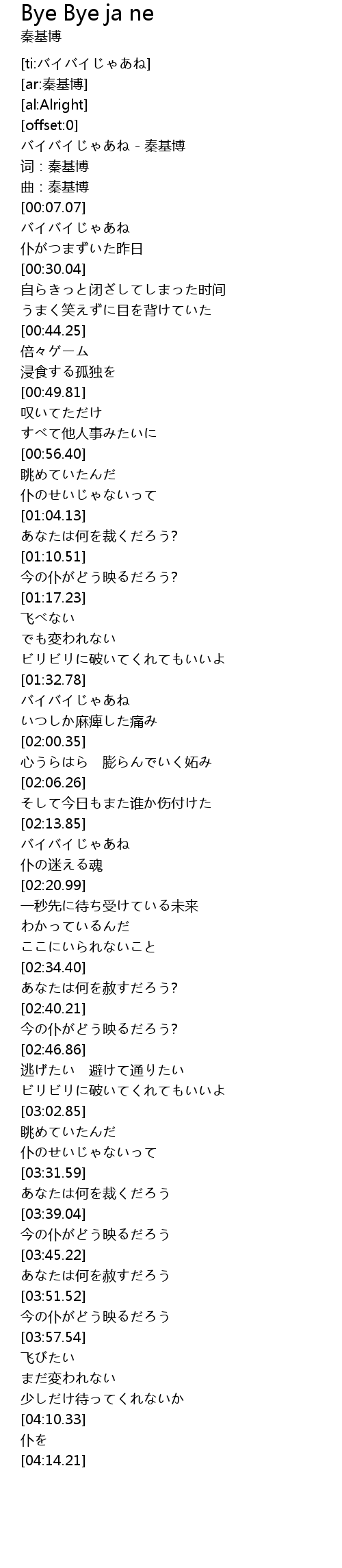 | [00:01.11] | バイバイじゃあね - 秦基博 |