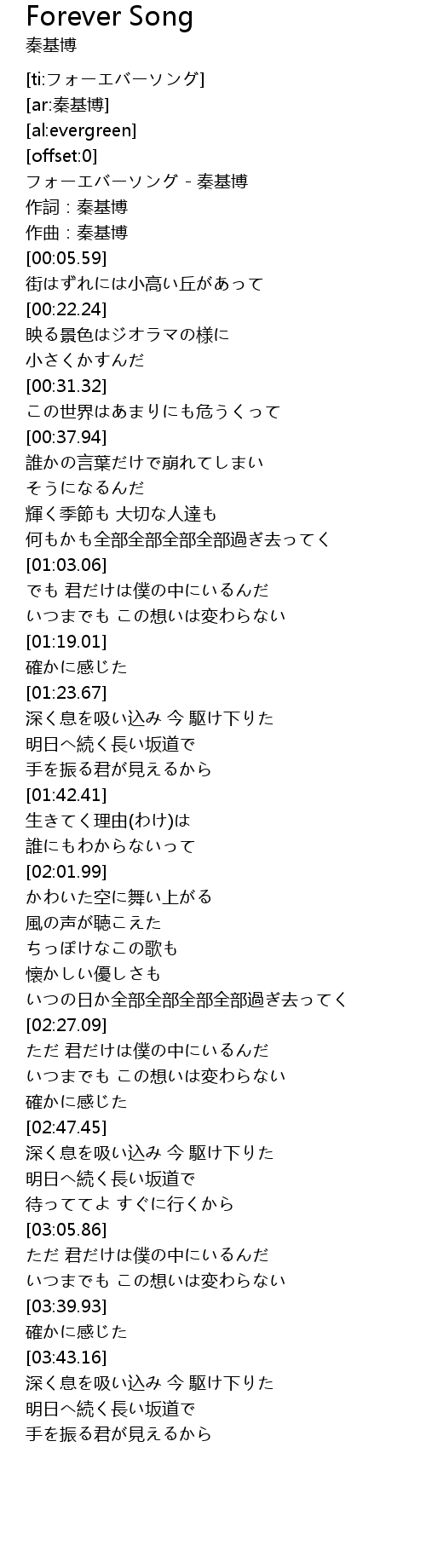 | [00:00.65] | フォーエバーソング - 秦基博 |